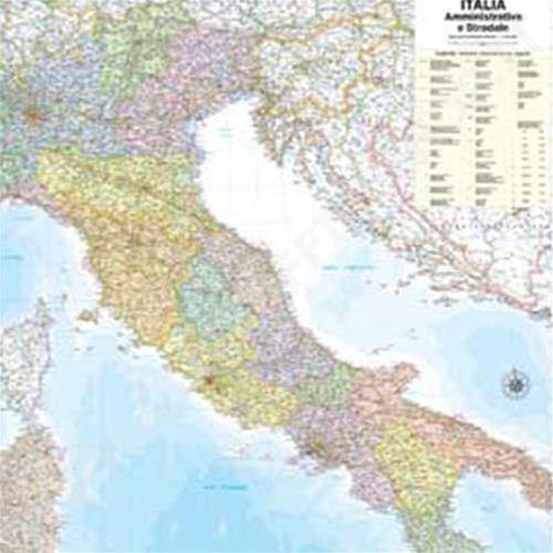 CARTINA MURALE AMMINISTRATIVA/STRADALE. PLASTIFICAZIONE ANTIRIFLESSO . ASTE DI SUPPORTO IN LEGNO NATURALE. SCALA 1:1.000.000 DIMENSIONI 98X119CM