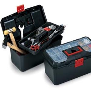 VALIGETTA PORTAUTENSILI IN POLIPROPILENE NERO CON INSERTI GIALLI.VASSOIO INTERNO ESTRAIBILE E ORGANIZER SUL COPERCHIO. DIMENSIONI : L 400 X P 210 X H 175 MM. PESO 0.985KG